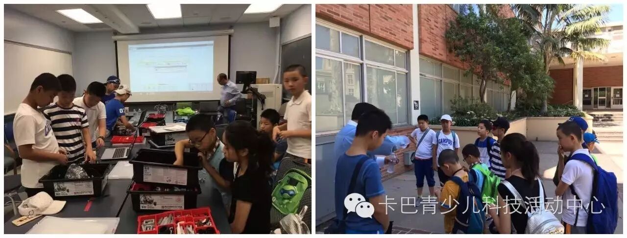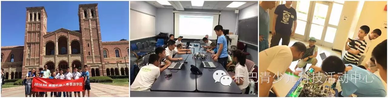 参观加州大学,了解加州大学重要建筑及其文化,然后跟着加州大学机器人教练马克老师系统学习机器人知识,期间还近距离参观并操作了马克老师带领的加州大学机器人比赛队伍的机器人。